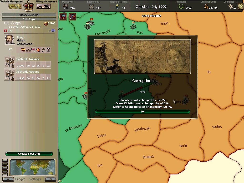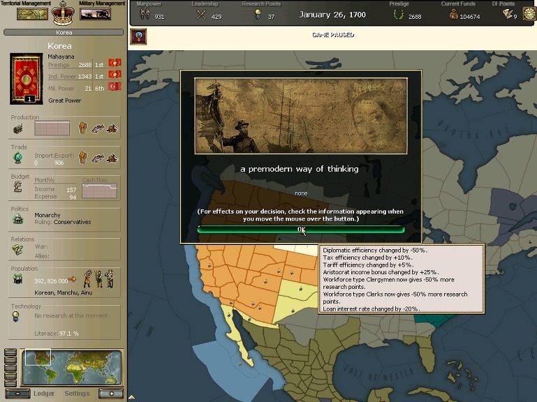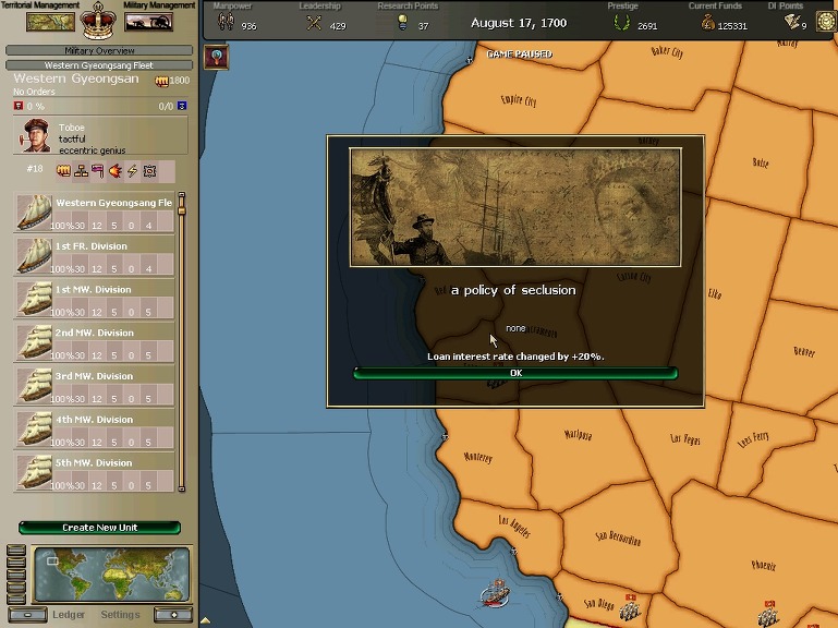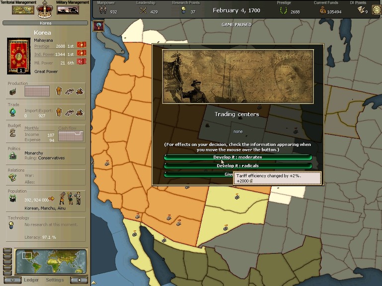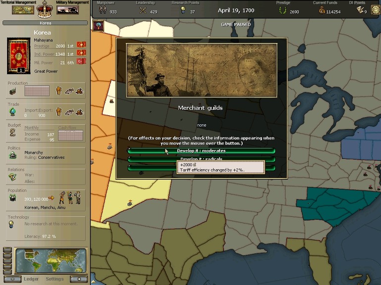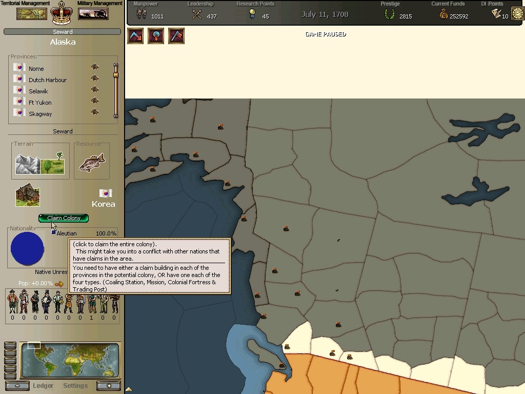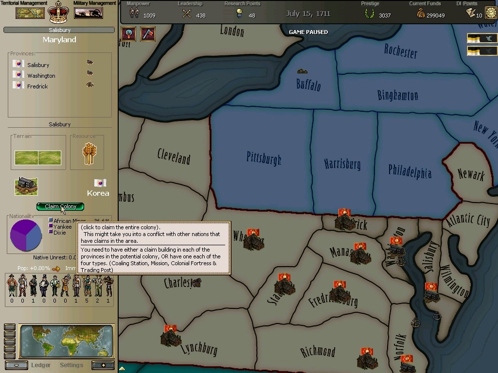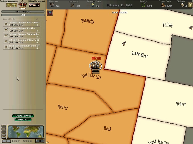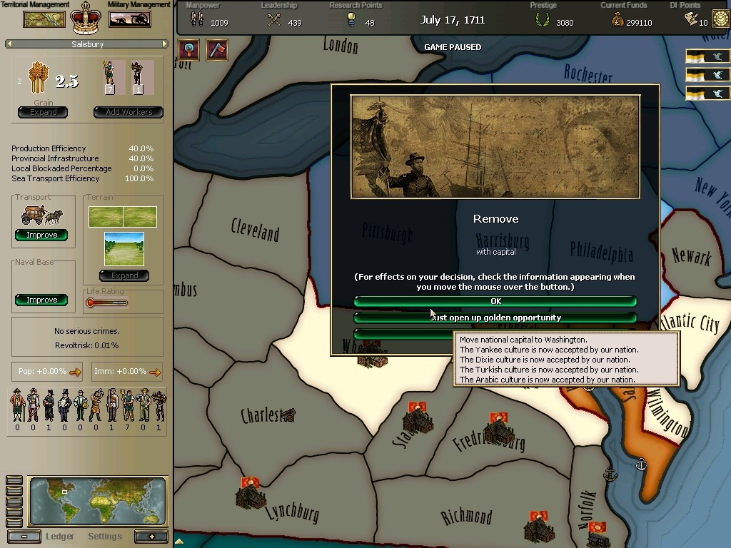 * 네브레스카도 넘어왔구요. 영국과의 교섭이 성사되어 동부의 개척도 호조를 보이고 있습니다.