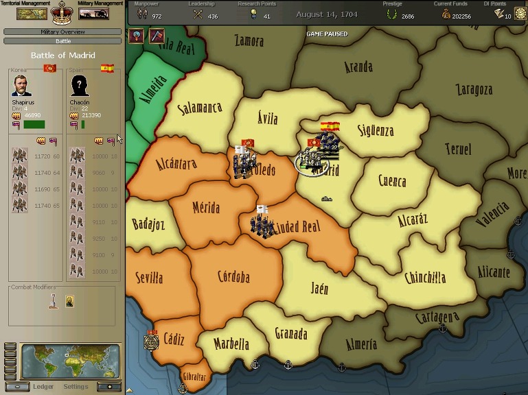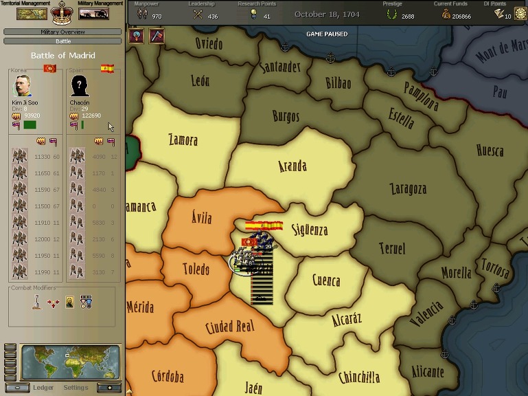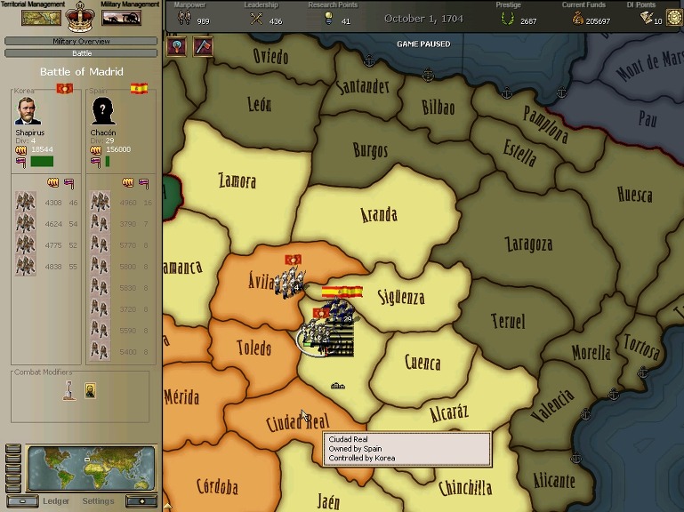 안달루시아와 마드리드 근간까지 점령한 제국사령군이 수도로 진격하여 서반아군과의 결전이 시작된다.