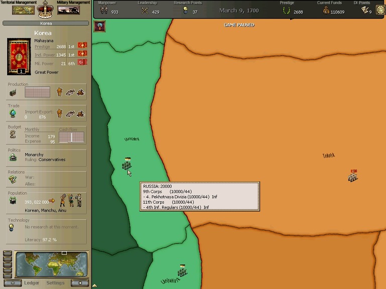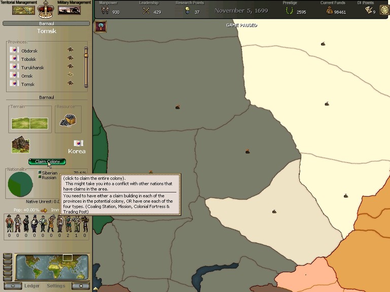 극동개척부는 동부로의 개간을 쉬이 멈추지않으나, 워낙 광활한 대지라 아직 중심부에도 발을 대지 못하고 있습니다.
