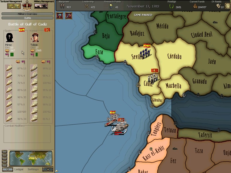 각 전역에서 병력을 전개하는 성가신 서반아 수군을 걷어낼 필요가 있다.