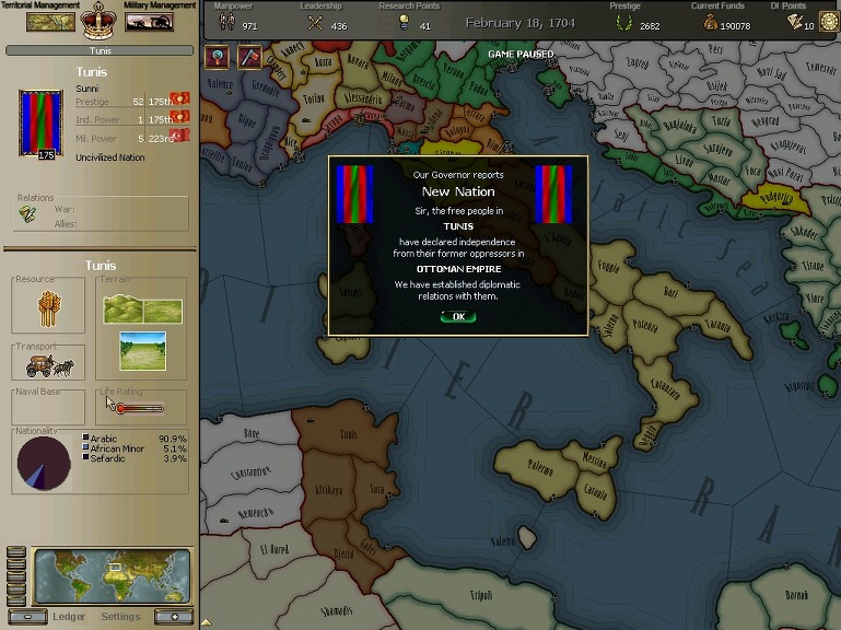 갑신년에 튀니스 술탄국이 독립하였다.