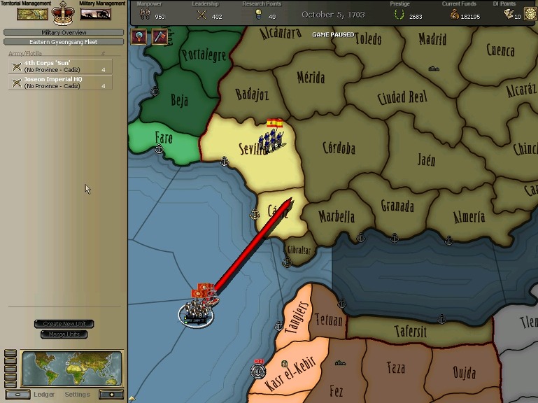 1. 서반아 왕국 해군의 근간인 안달루시아지방을 타격하여 왕국해군의 뿌리를 척결한다.
