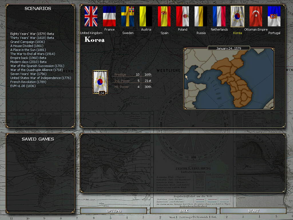 시기는 1579년 80년전쟁 각본이며 진행할 국가는 조선입니다.