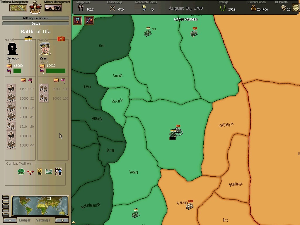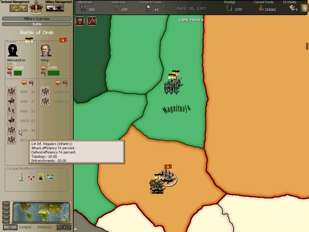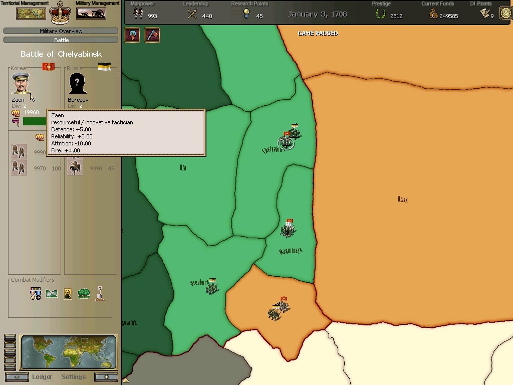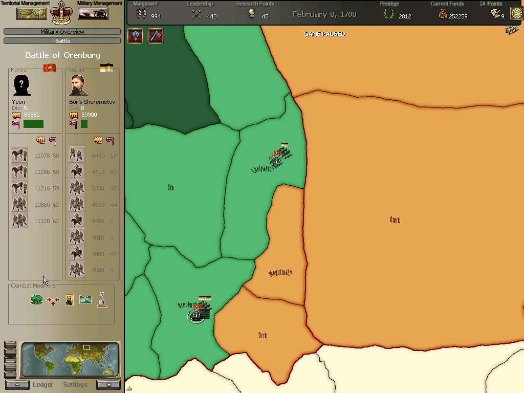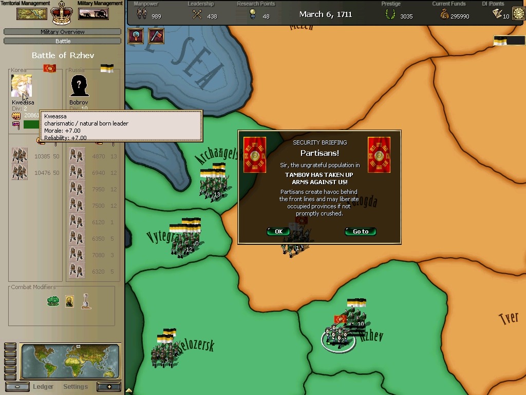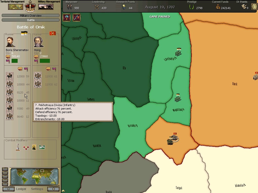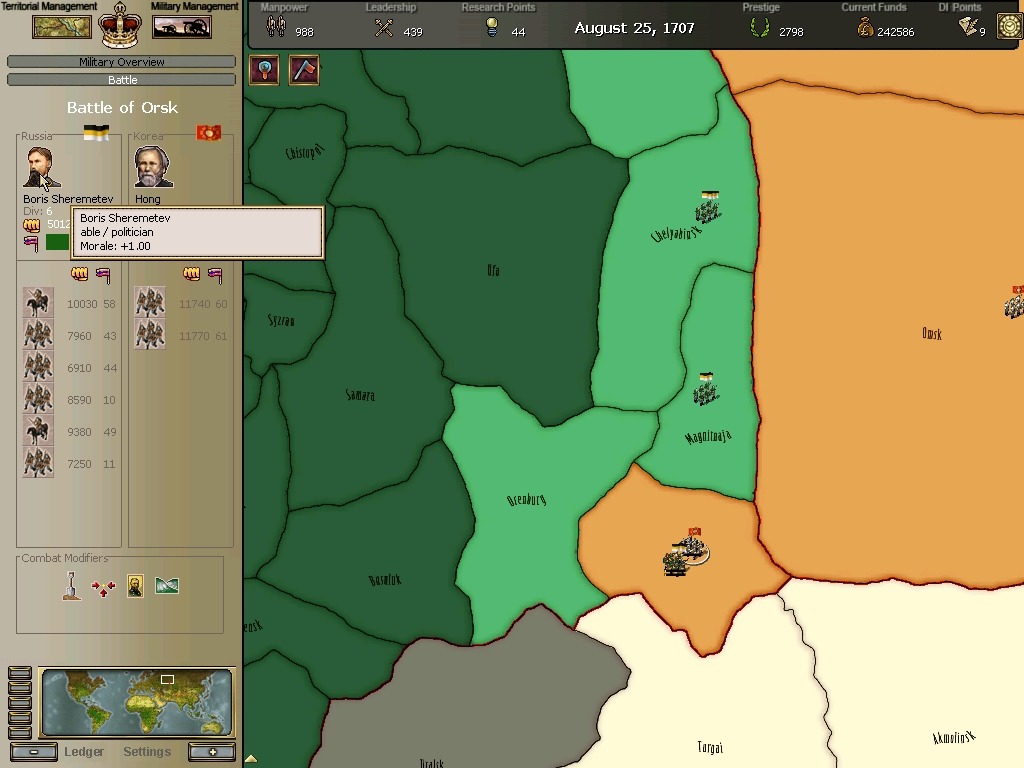 오르스크전투에서 무려 총사령관인 보리스 셰레미데프가 개입하는데 홍장군의 군단에 패퇴합니다.