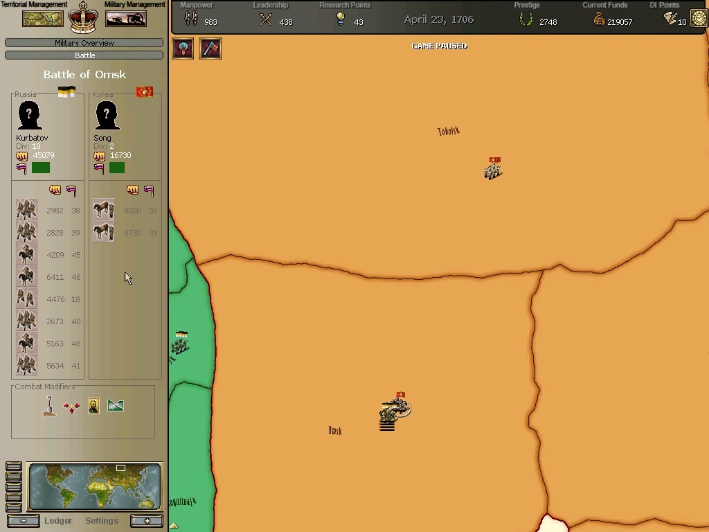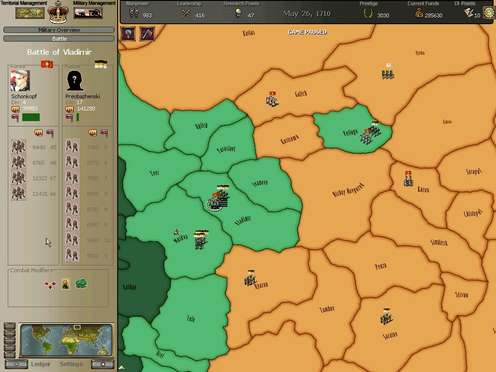 군사점수 23에 달하던 노서아 왕국이 어느새 10점으로 축소하였습니다. 전력의 태반이상이 소멸한것입니다.