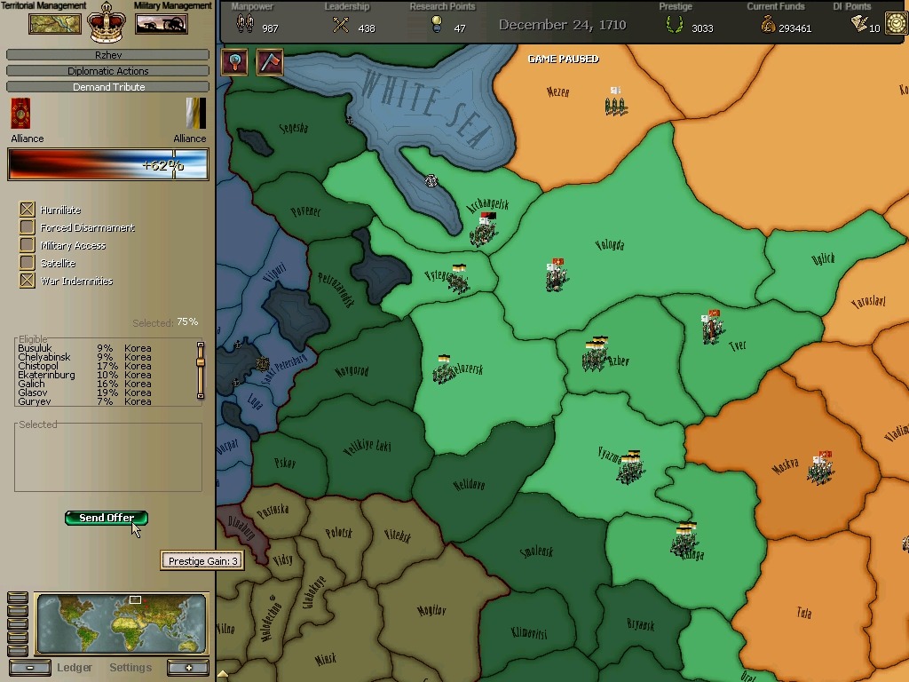 노서아 왕국은 그들의 군사적 요충지인 옴스크를 되찾기위해 갖은 노력을 다한다.