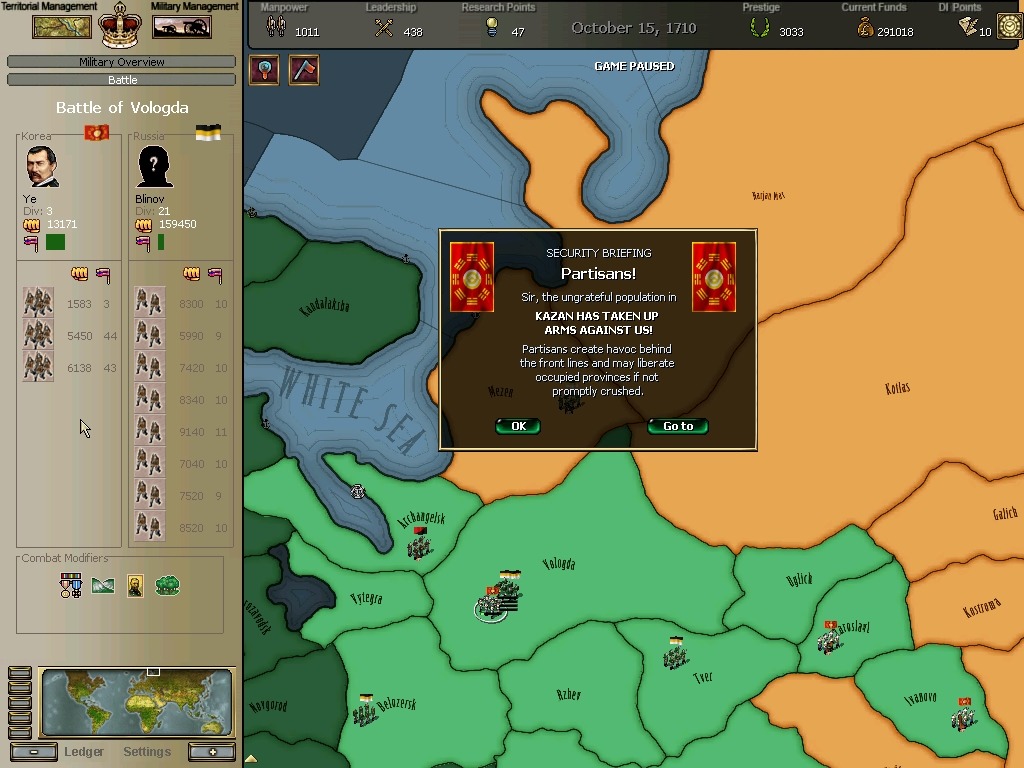 후방에서 성가신 유격대가 일어나고, 수많은 군대가 남아있었지만...