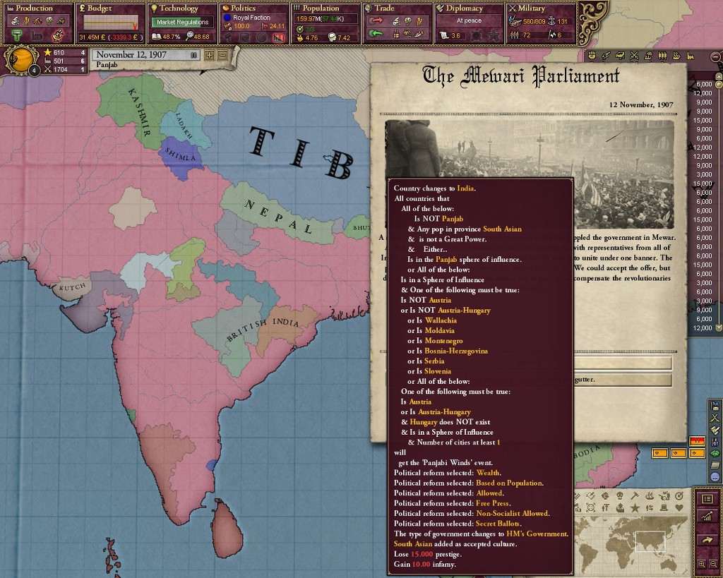 예상치못한 인도성립이후 의욕이 사라져 게임종료...