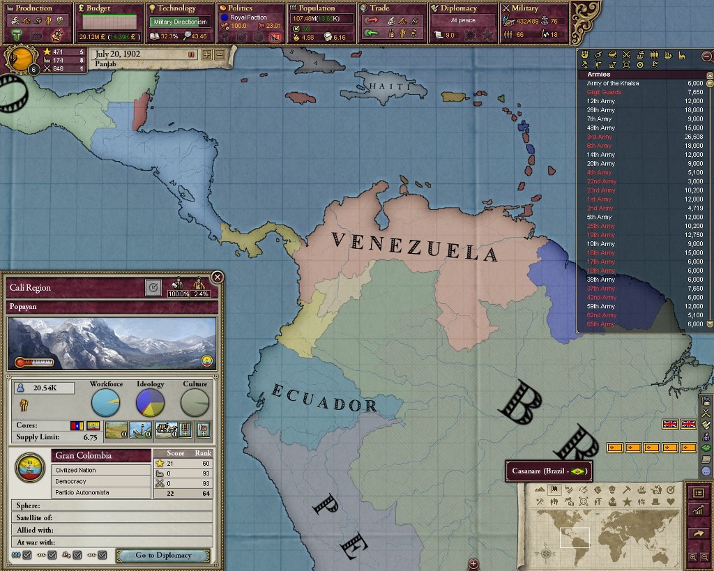그란콜롬비아는 성립되었지만 베네수엘라가 패기넘치네요.
