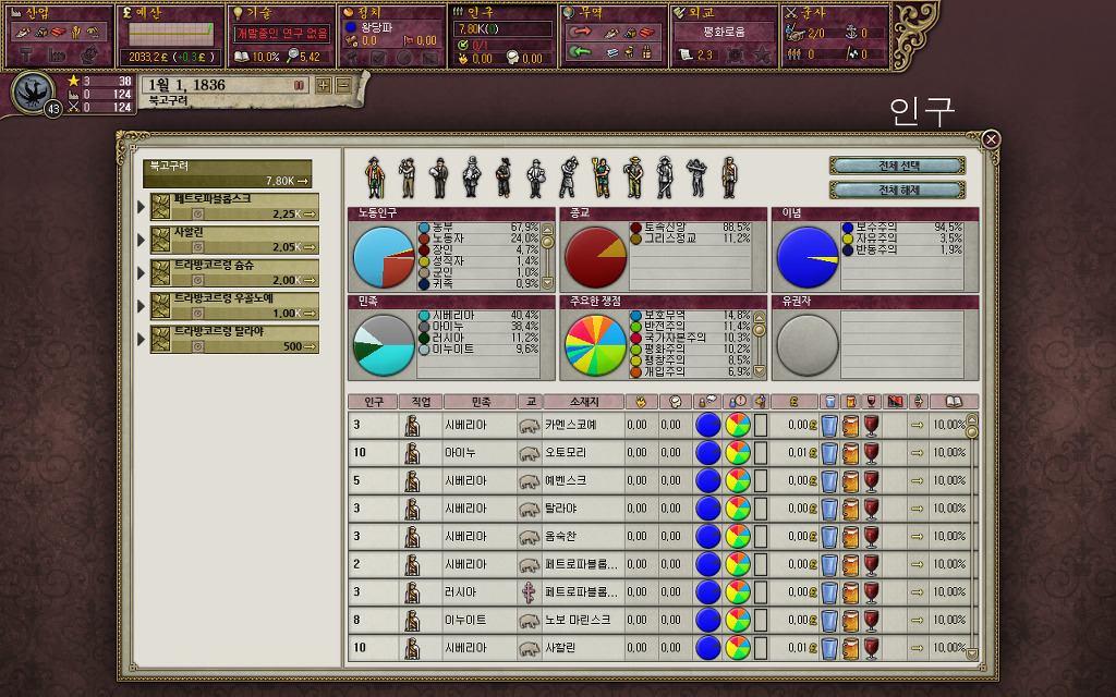 관료랑 군인은 한국인. 농민, 노동자는 원주민으로 할 생각입니다.