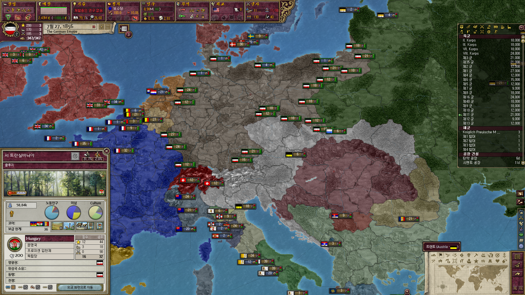 나는 오스트리아를 철저히괴롭히며 헝가리를 풀어주었다.. 그러자 헝가리는 나를 아버지처럼대하면서 오스트리아를 저주하고잇다.