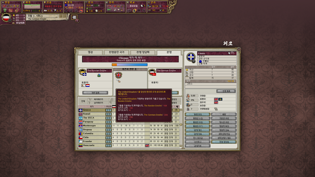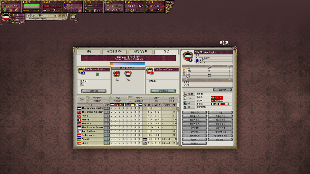 지금 상황이.. 내가 이기고잇는지 열강동맹들이 이기는지.. 음 님들이 좀알려줘요.. 누가이기고잇는지.