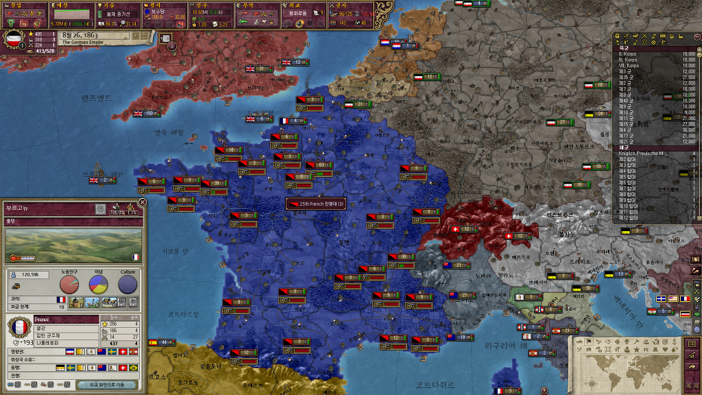 영국은 프랑스를통해못오는 ㅍㅍ 이유는 나랑동맹일때 프랑스를 실컷패고놀음 흐흐. -