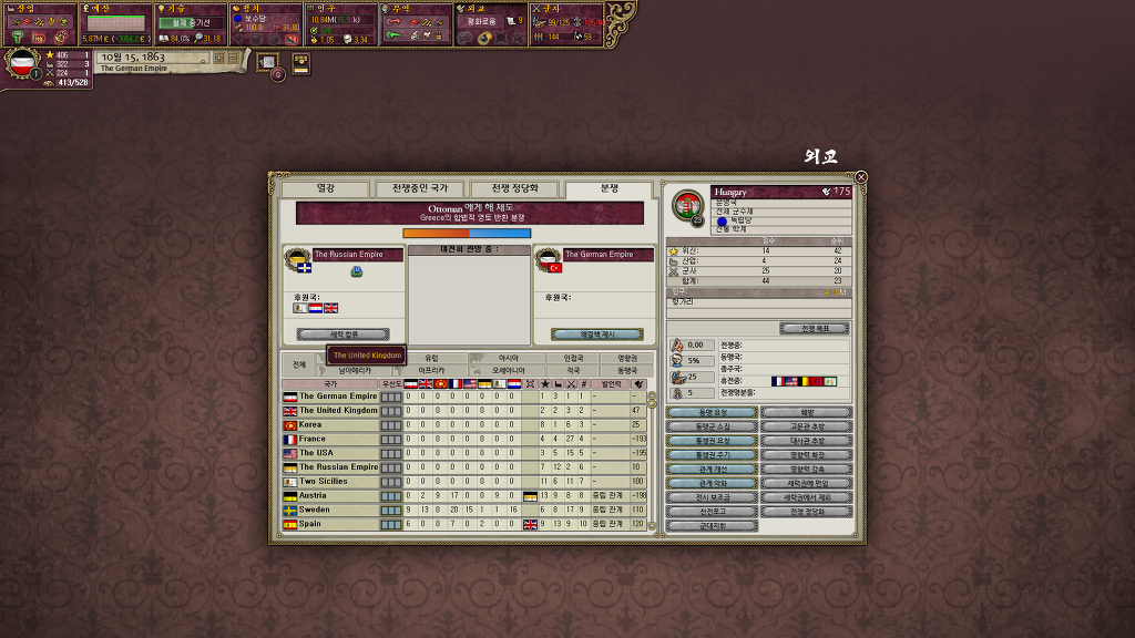 ㄷㄷ!! 누가우리헝가리를!! 내가 살려주고 재워줫는데.. 영향권을 뺏어먹는. 러시아 오구리넘들.. 그리고 러시아랑동맹먹고 통행권줘서 날뒷치까는 이 버르장머리없는 .. 내가살려줫건만.. ㅠㅠ