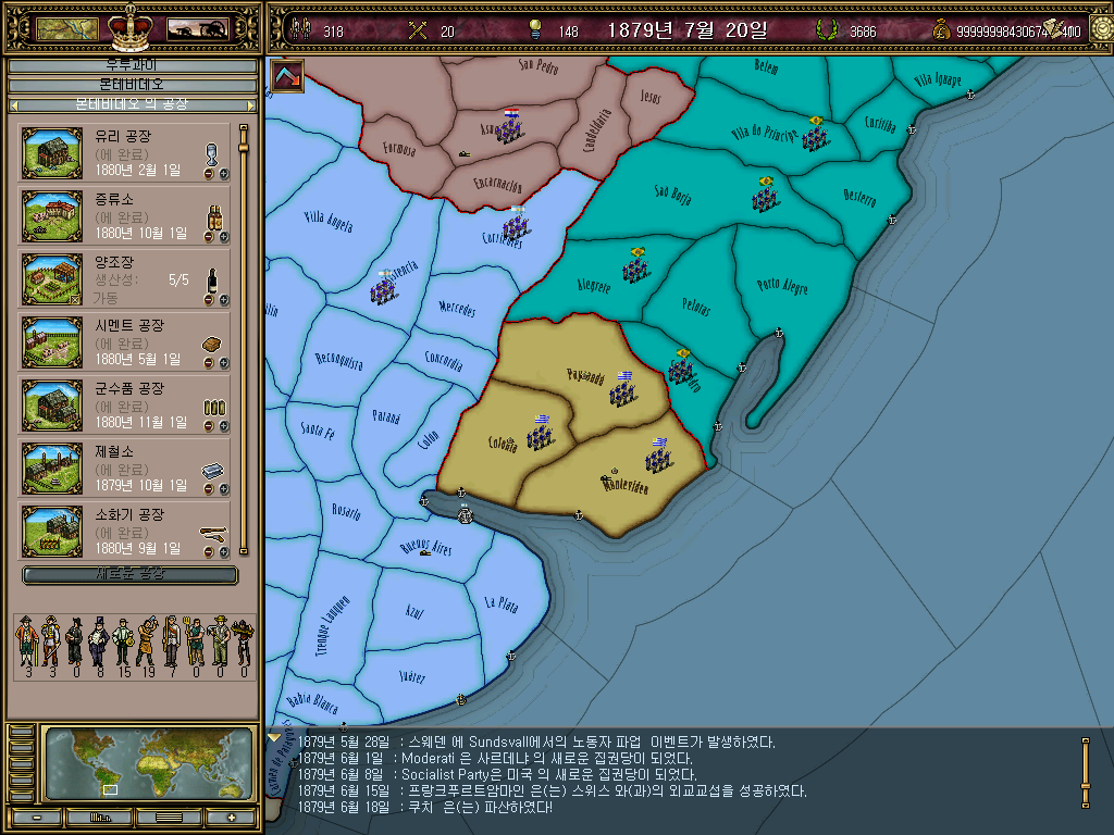 자본가는 수도에 한마리, 그리고 인구는 대략 1700만으로 시작합니다.