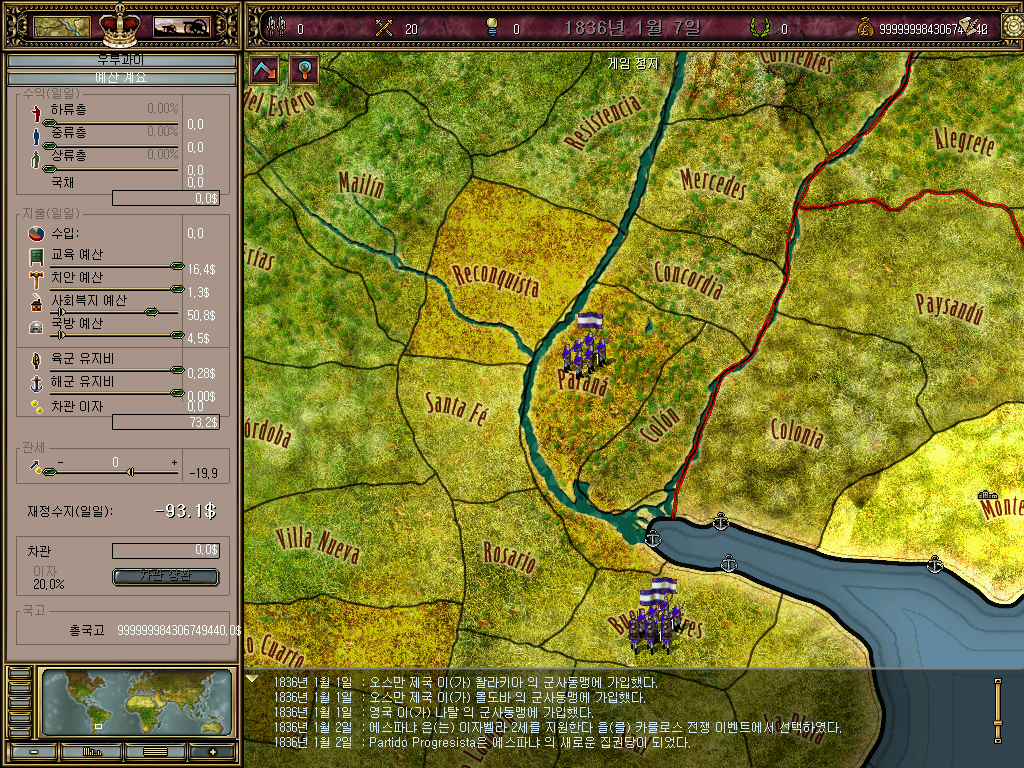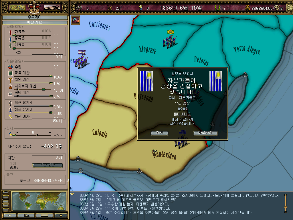 혹시 위의 사진의 RGO수입이 쩔거나 관세 -100이라서 그런것인지 아닌지 그것이 알고싶다... (다음 연대기에서 다루겠습니다.)