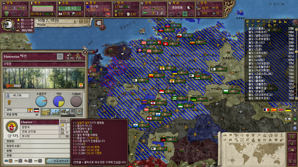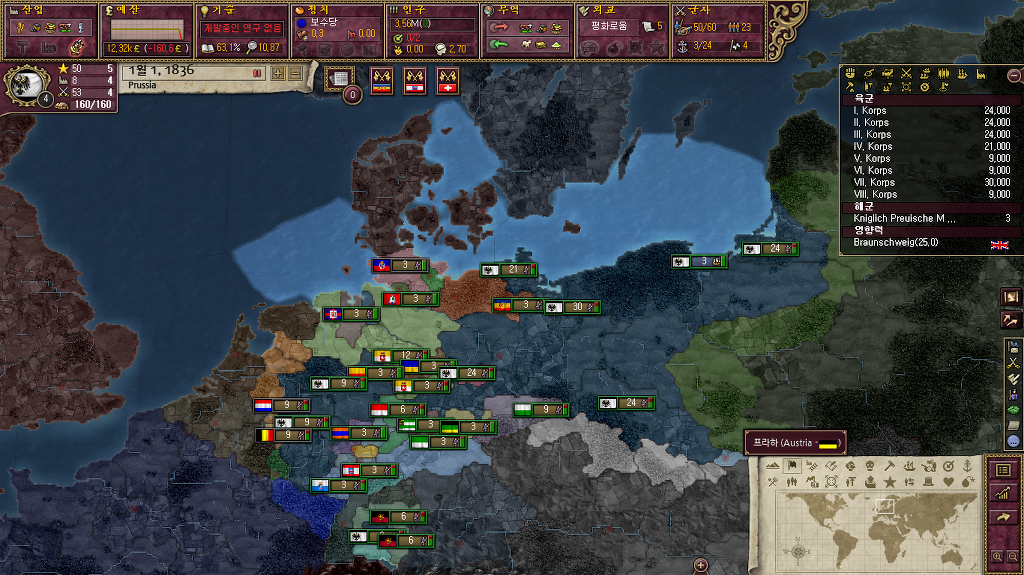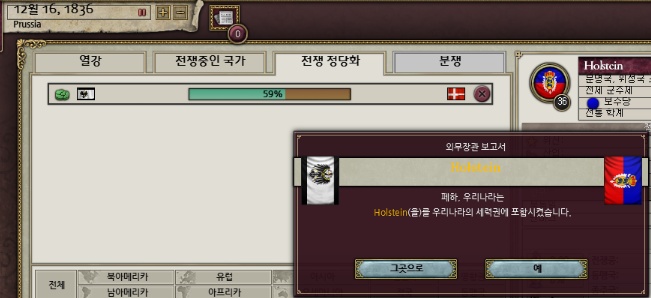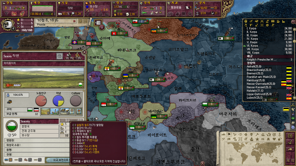 "하지만 아직 빅린이라서 손쉬운 프로이센으로 시작했습니다. 공략 따라 가니 룩셈부르크 포함한 북독일 연방 건국에 성공했네요."