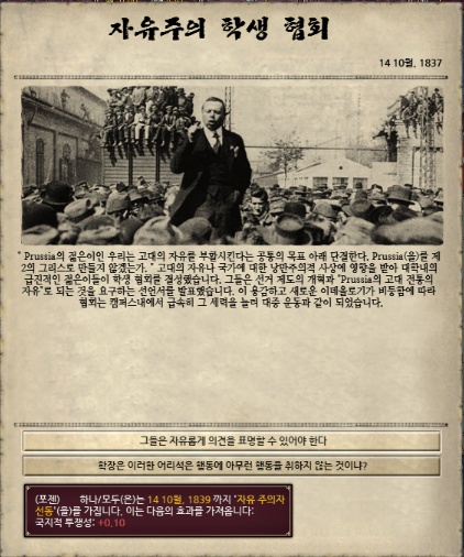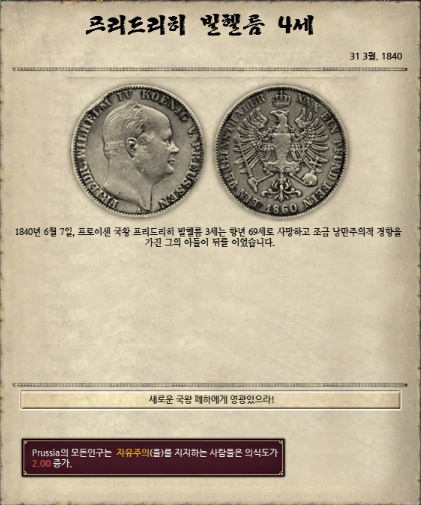 그리고 독일 내부에서 자유주의의 시대가 도래했다. 이것은 보수주의를 유지하고픈 왕에게는 껄끄러운 소식이었다.