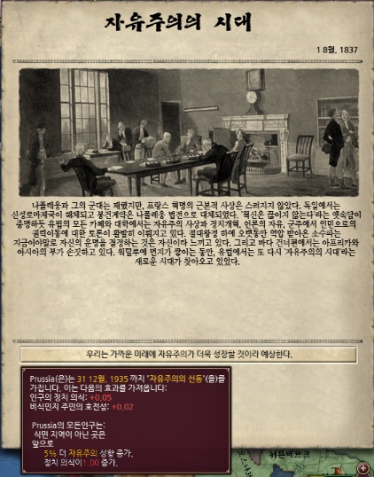 1836년 1월 1일. 독일 연방 내의 대부분의 국가들은 프로이센의 영향권 하에 있었고, 앞다퉈 프로이센의 동맹이 되기 위해 줄을 섰다.