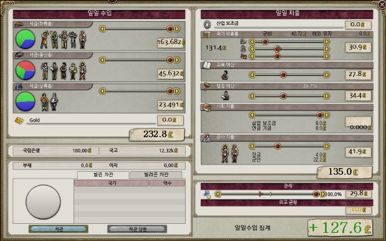 국가의 재정이 그야말로 바닥을 뚫을 기세였기 때문에 국왕은 일반 세금과 관세를 무자비하게 올리고(그래봐야 전체의 25%였다.) 군비를 팍 줄이는 등 긴축정책을 펼쳤다.