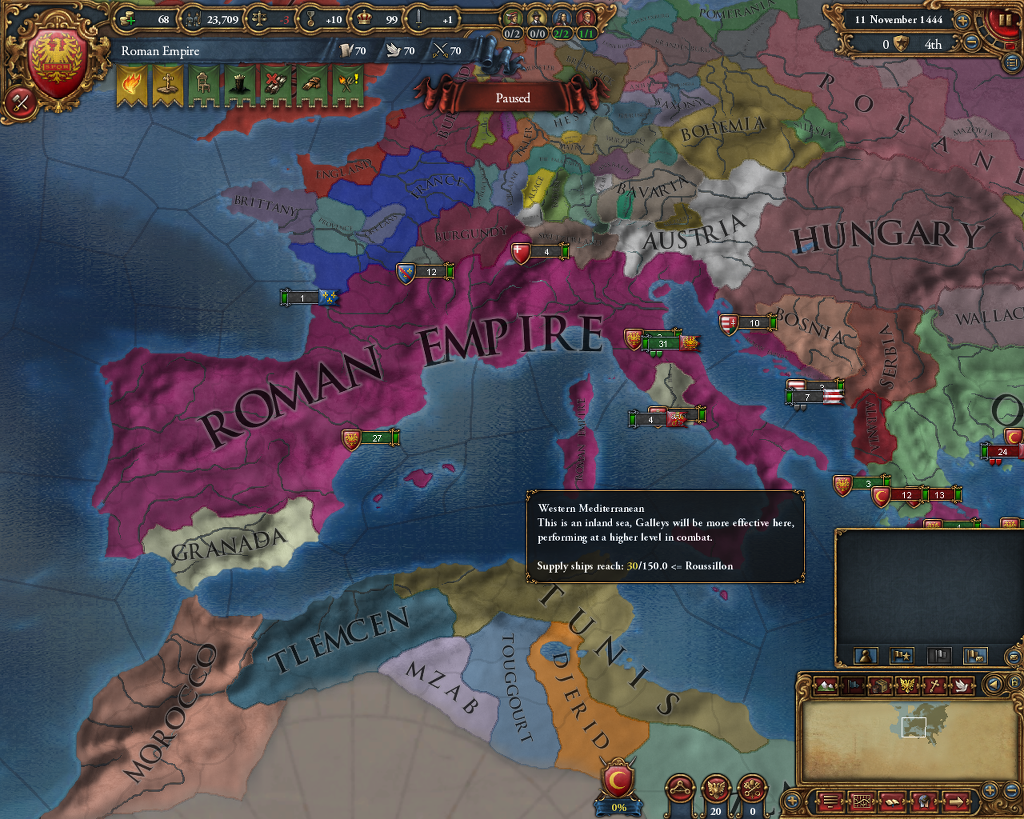 지금 유럽에 대해 고민중인게, 아예 프랑스랑 잉글랜드도 로마한테 넘겨줘서 서로마제국을 구현하는게 어떨까 하는 점입니다.