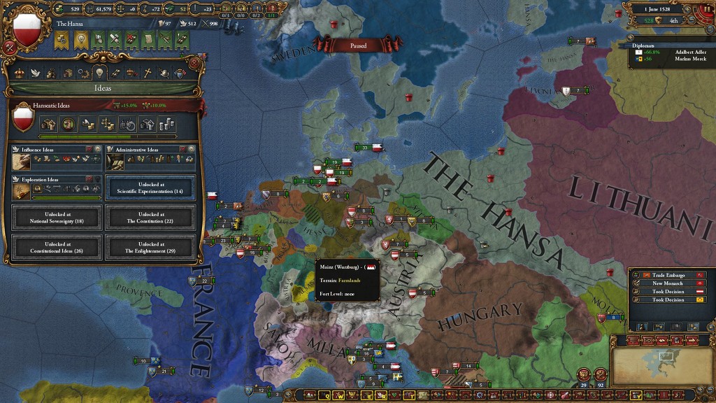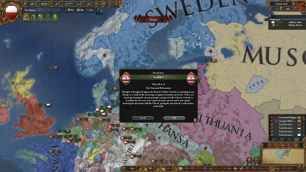 이제 슬슬 폴란드 변신해서 전투아이디어를 끼얹으면 좋을텐데 그놈의 신롬 선제후가 뭔지 참 애먹이네요ㅋㅋ