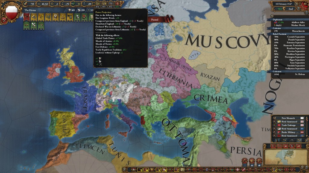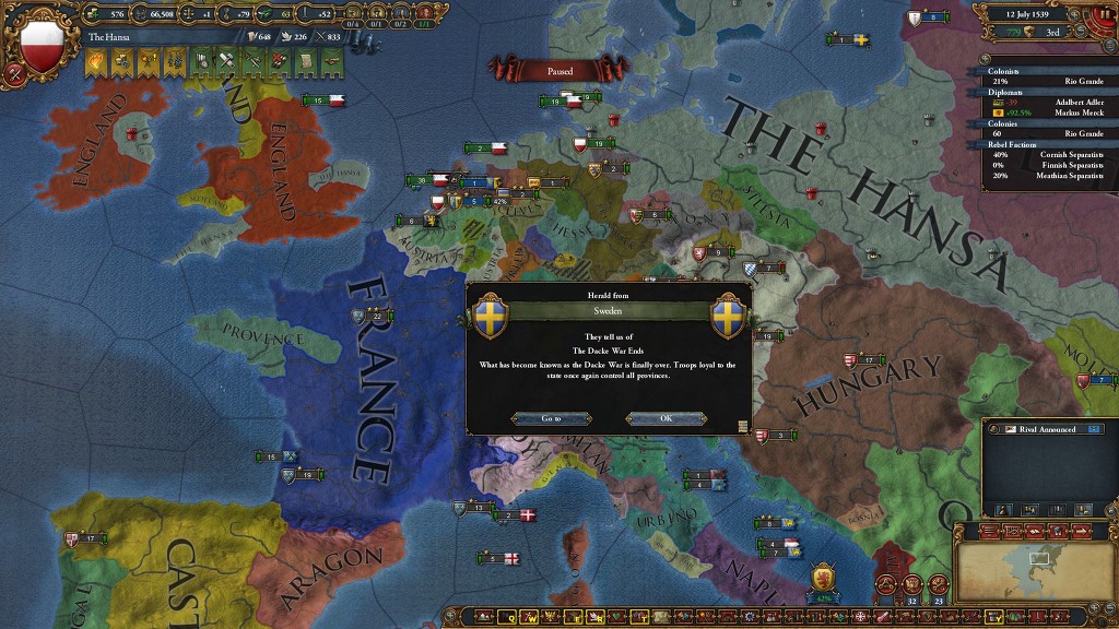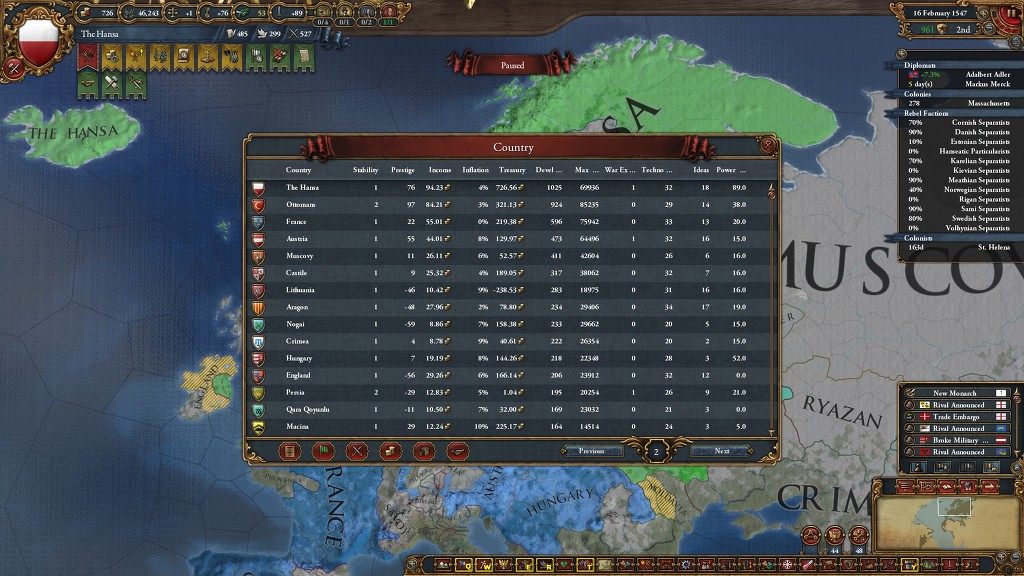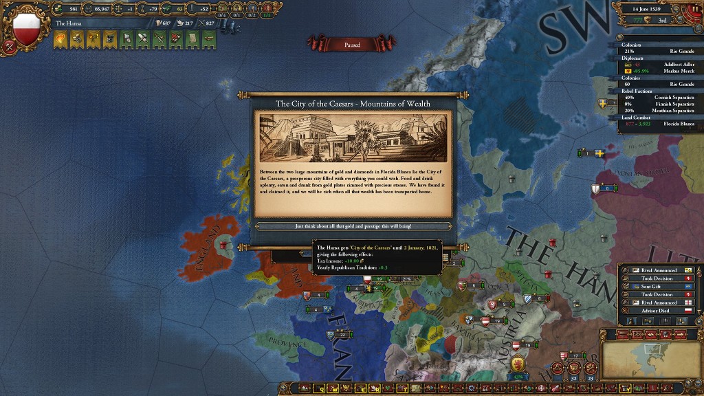 이제 캠페인도 본격적으로 중반으로 들어간 1547년. 캠페인 시작후 약 100년 후 중간보고.
