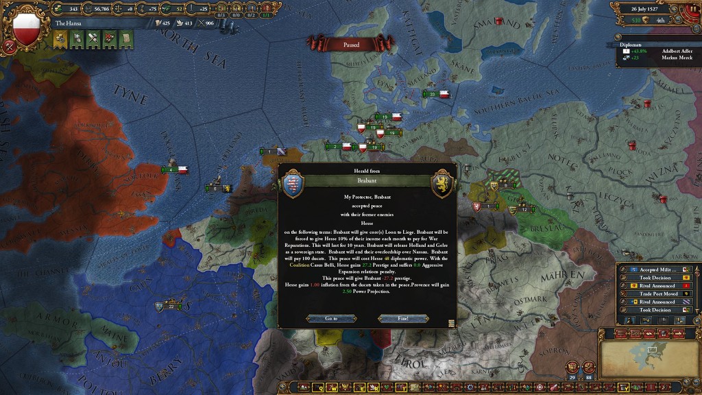위의 스샷에 잠깐 전쟁표시가 보였듯이 두번째로 브란덴을 삭제했지만 또다시 선제후가 되지 못했습니다..