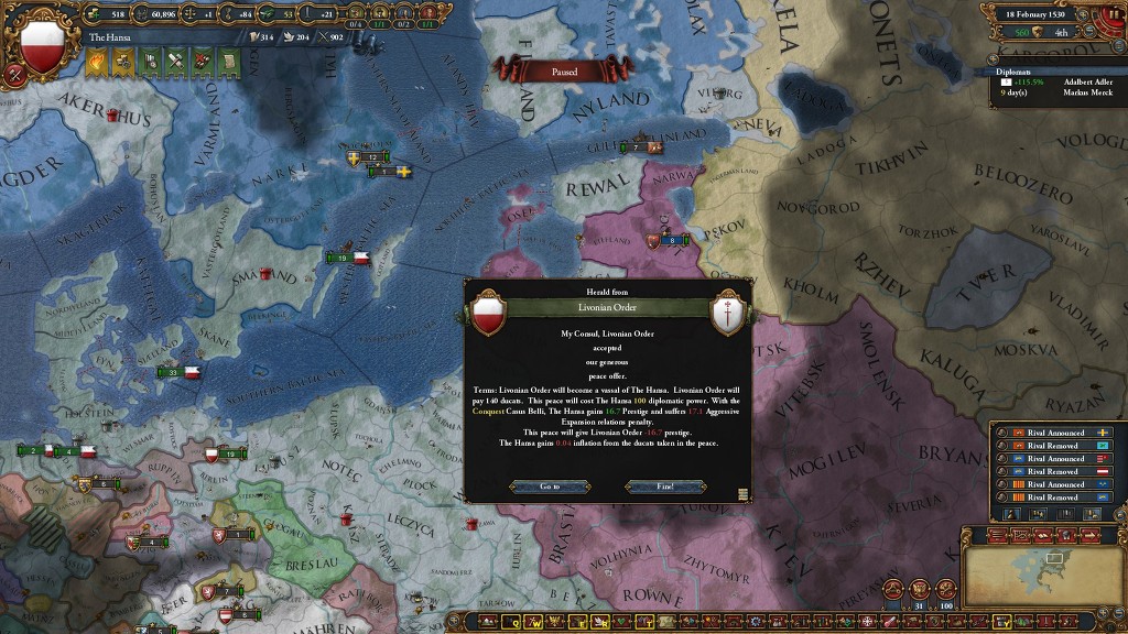 폴란드는 거의 다 잡았고 이제는 발틱노드를 장악해야죠.