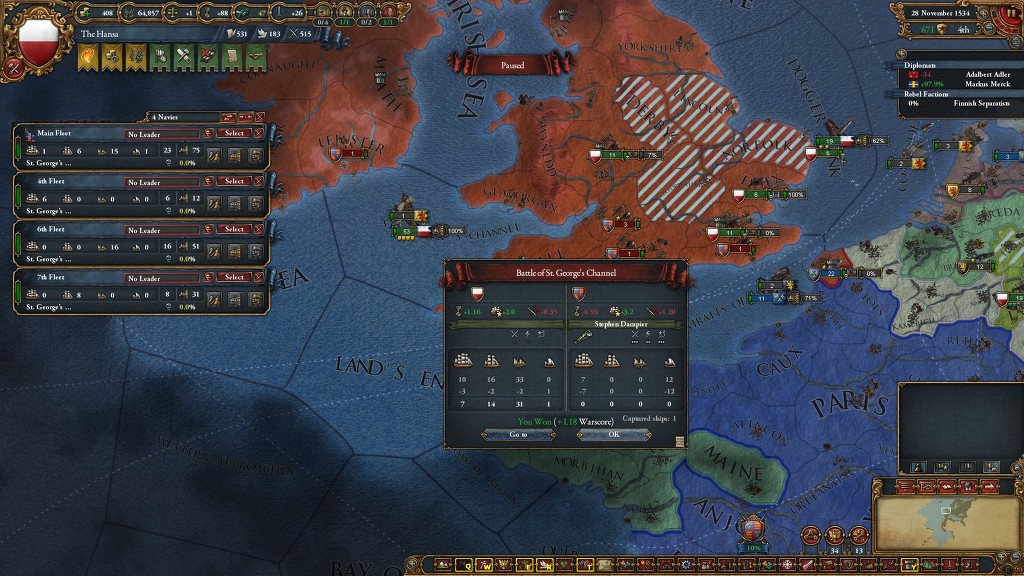 일단 코어거리가 너무 모자라서 잉글랜드를 잡으면서 대서양으로 나가고