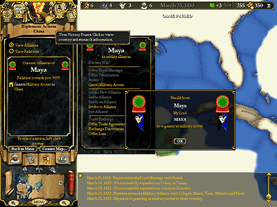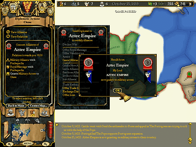 마야로부터 아즈텍이라는 국가의 존재를 전해들은 루안 시앙은 역시 그들에게도 하사품을 내리고 기항권을 받는다.