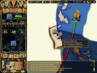 한편, 정무 도독은 동아프리카의 식민지 반군을 진압하기 위하여 병력을 파견한다. 함대가 남진하는 도중 옆에 교역센터가 보이자