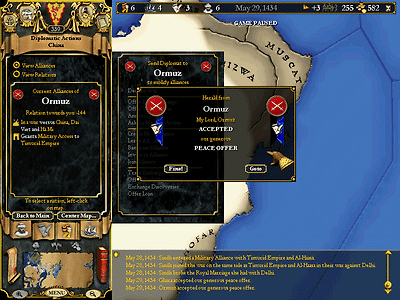 이것중 하나를 수행하라는 것 뿐이었다. 그 외의 모든 제의는 거부되도록 명령되어있었다. 물론 호르무즈의 입장에선 다소 날벼락이었겠지만(난데없이 바다에서 수백척의 함대가 나타나더서 수만의 병력이 상륙해오니)..