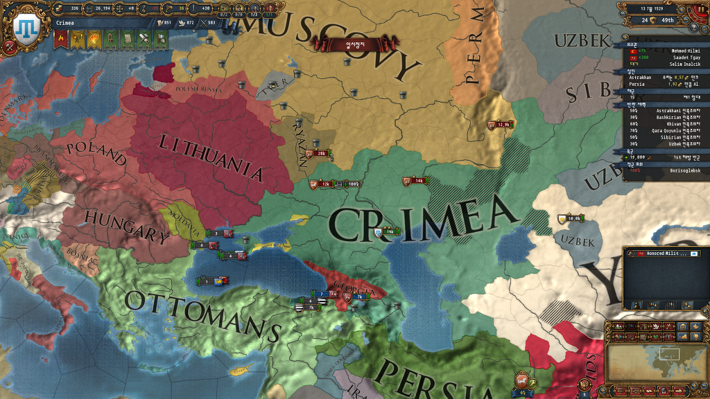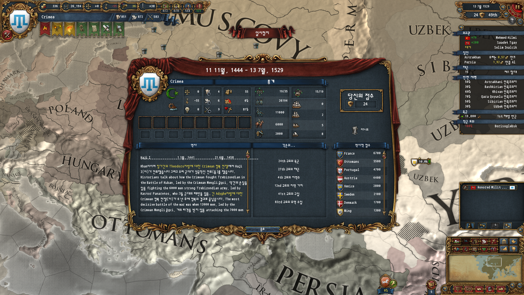동맹은 야르칸드랑 오스만이었는데 오스만은 미션떔에 끊고 야르칸드는 전쟁할 떄 땅 준다했다가 깜빡해서 안 줘서 끊고 암튼 그런 이유로..하 끗