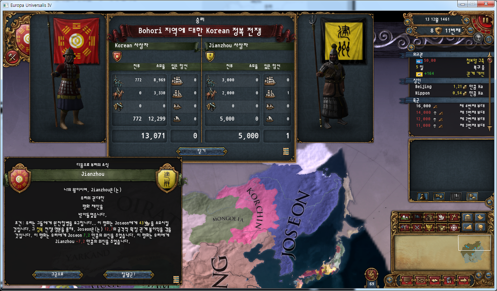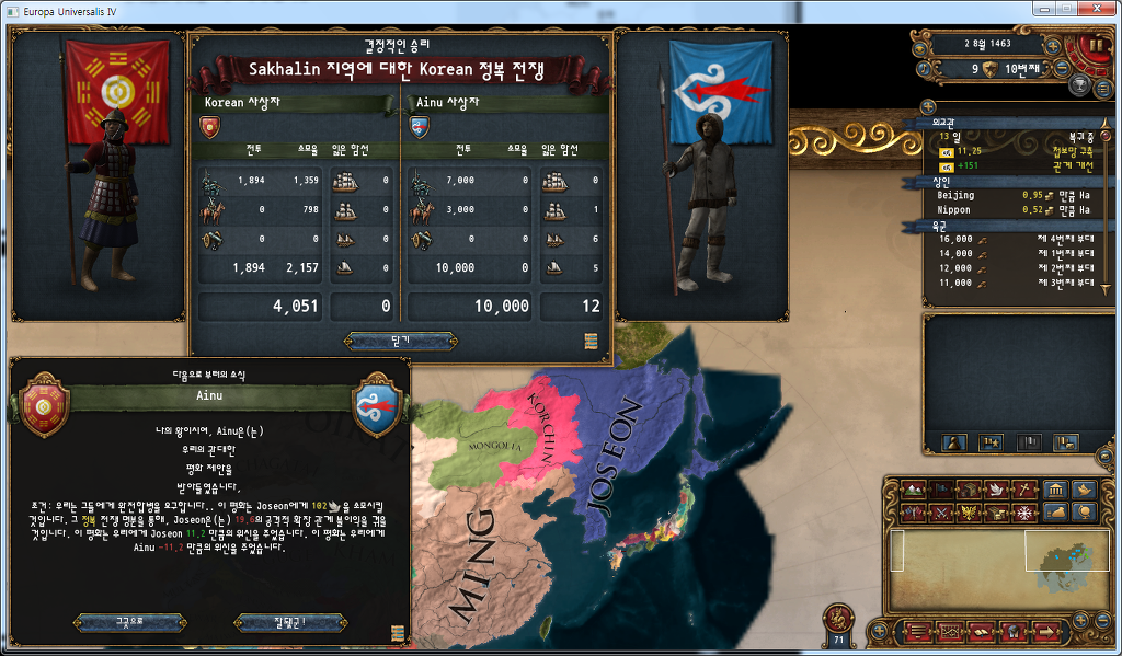 1463년.조선은 압도적 교전비로 원정을 대성공으로 이끈다.