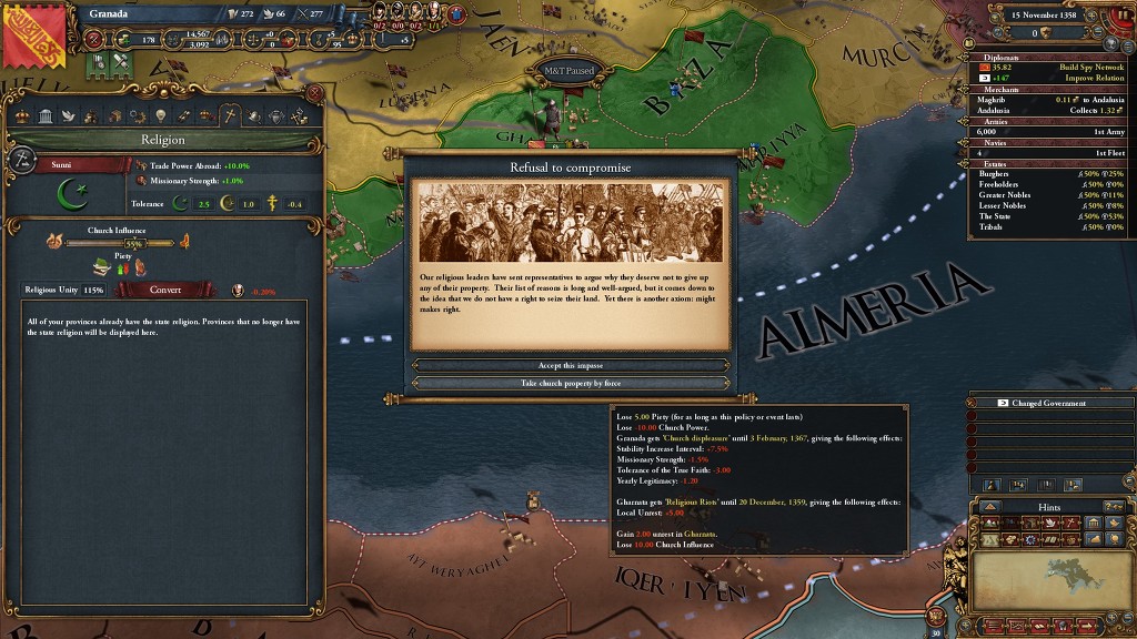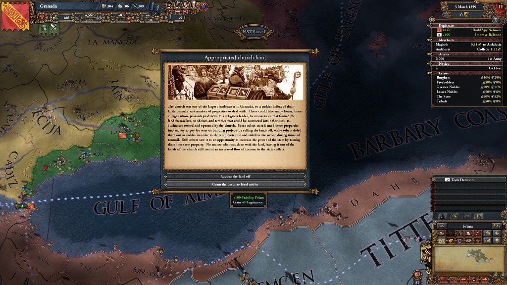 교회 영지를 뺏는 디시전을 누르면 이렇게 2단계의 이벤트가 일어 나는데