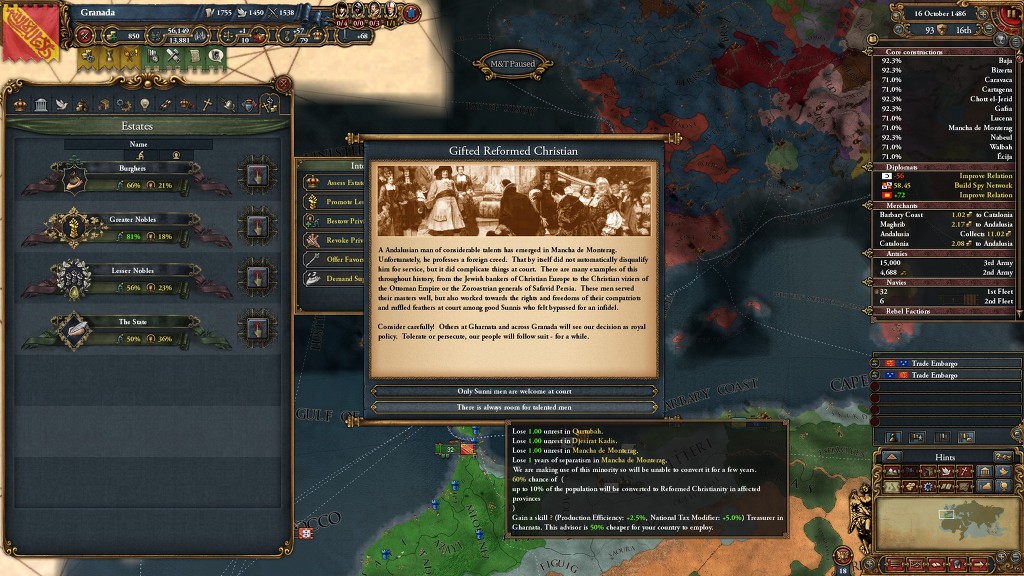 그래서 그라나다를 제외한 이베리아 반도가 걸레짝이 되었고 일시적으로 그라나다가 세비야 노드에서 1위를 먹는 이변도 일어납니다.