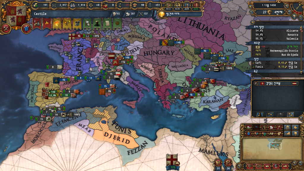 타 국가 몇개를 돌리고 다시 카스티야를 잡아 보았다.