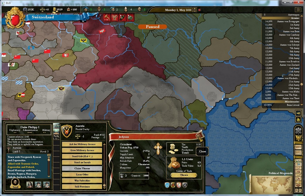 한때 나라의 존폐가 위험해질 위기도 있었으나 당시 짧은 동맹이었던 선황제 쥐군 8세의 힘으로 성세를 회복한 뒤 지속적으로 튜튼 기사단을 압박하며 세력을 늘리고 있었지요.