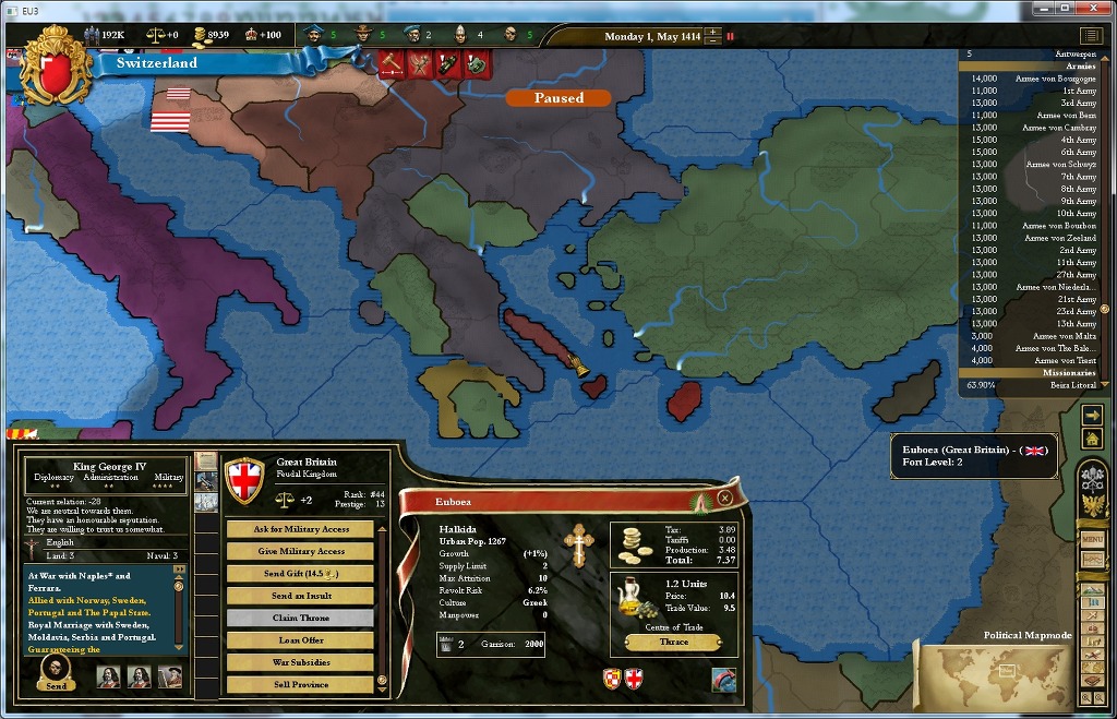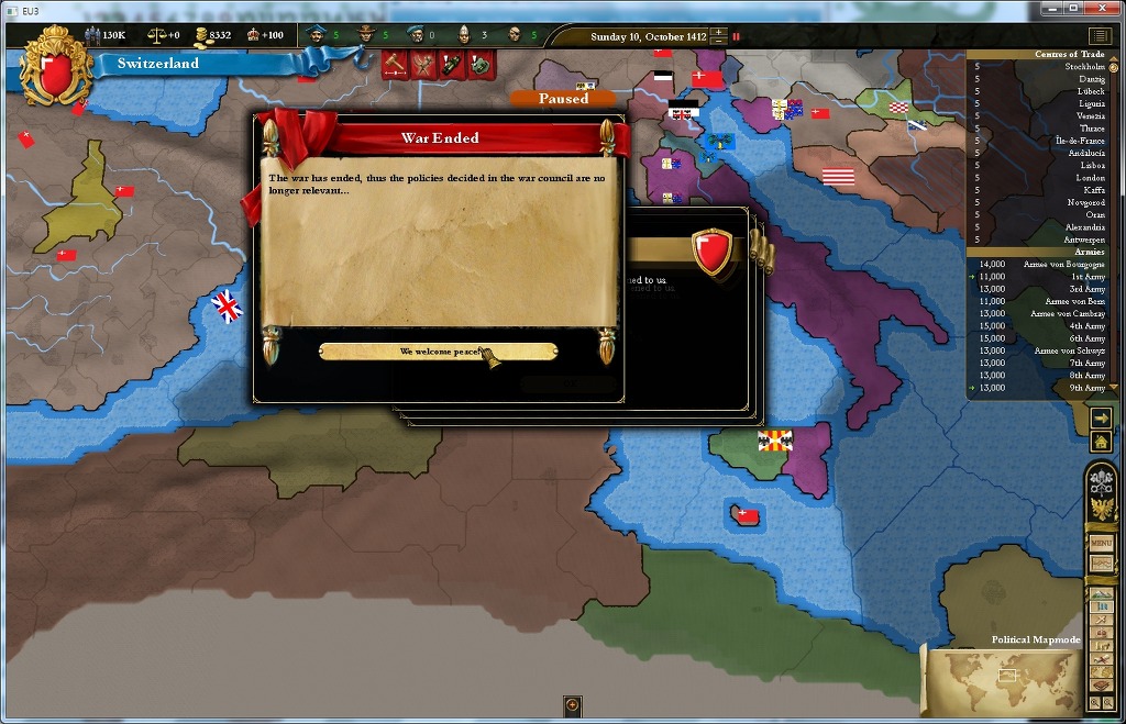 카스티야와의 전쟁이 생각외로 너무 긴 시간을 끈 탓에 주변국이 큰 신경을 쓰지 못해 평판이 더 나빠지지는 않은 모양입니다.