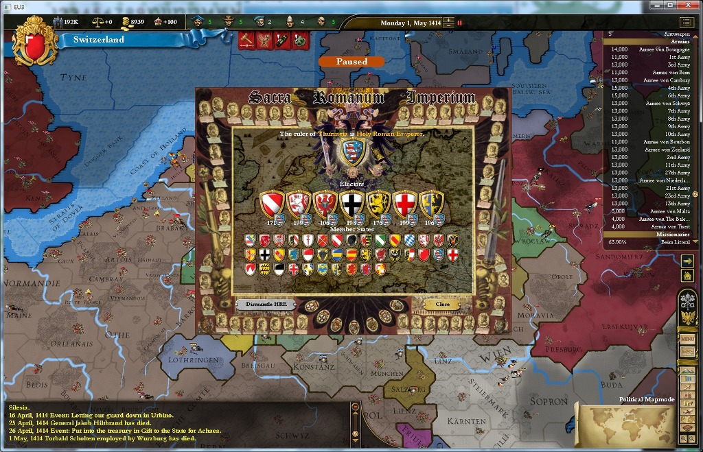 영원한 스위스의 적이자 걸림돌, 신성로마제국은 이전의 성세를 거의 다 잃어버렸습니다.