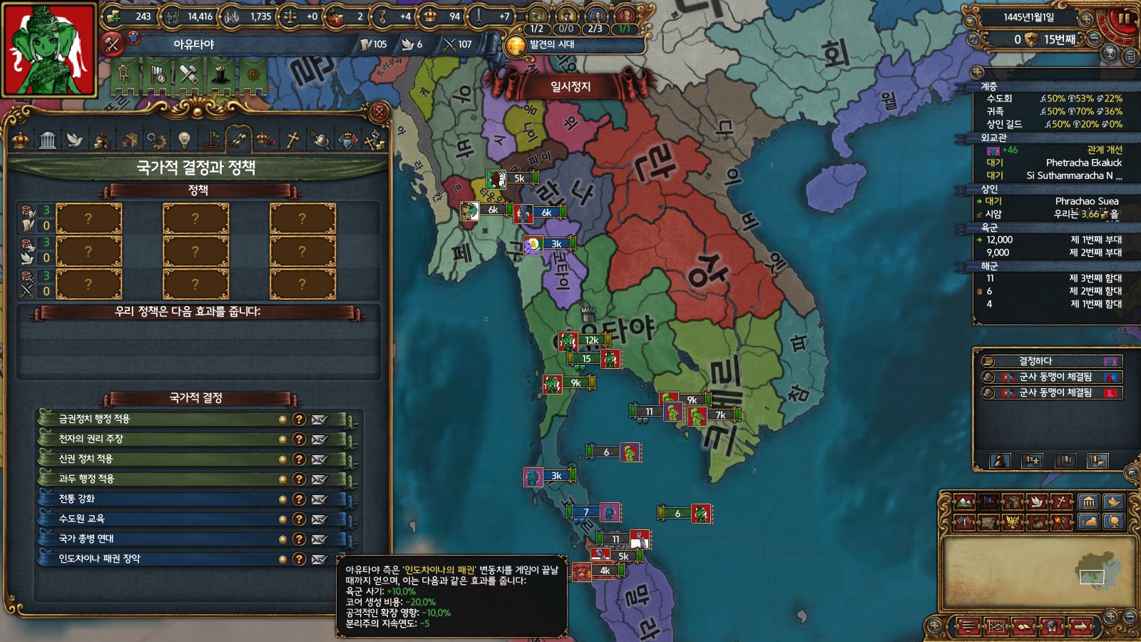 인도차이나를 좀 패치할 생각입니다. 말라카를 빼면 디시젼 하나 달랑 넣어주고 개발도 올린것 외에 패치된게 없이 차별받던 녀석들이였죠.