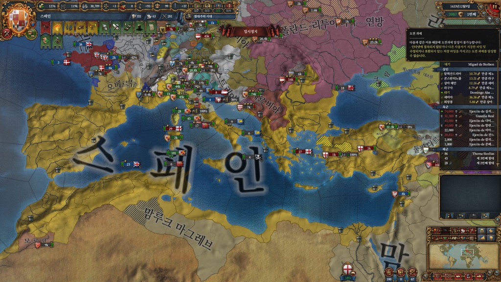 alt+F4를 자주 누르면 막히는 걸까요?? 아니면 유로파 킨 상태에서 컴퓨터가 로그오프상태가 되면 그런걸까요?? 하아... 비잔티움 살리고, 골골대는 터키 속국으로 만든뒤 먹은거까지 되게 재밌게 하고 있었는데 도전과제가 달성 안된다고 하니 힘이 쭉 빠지네요