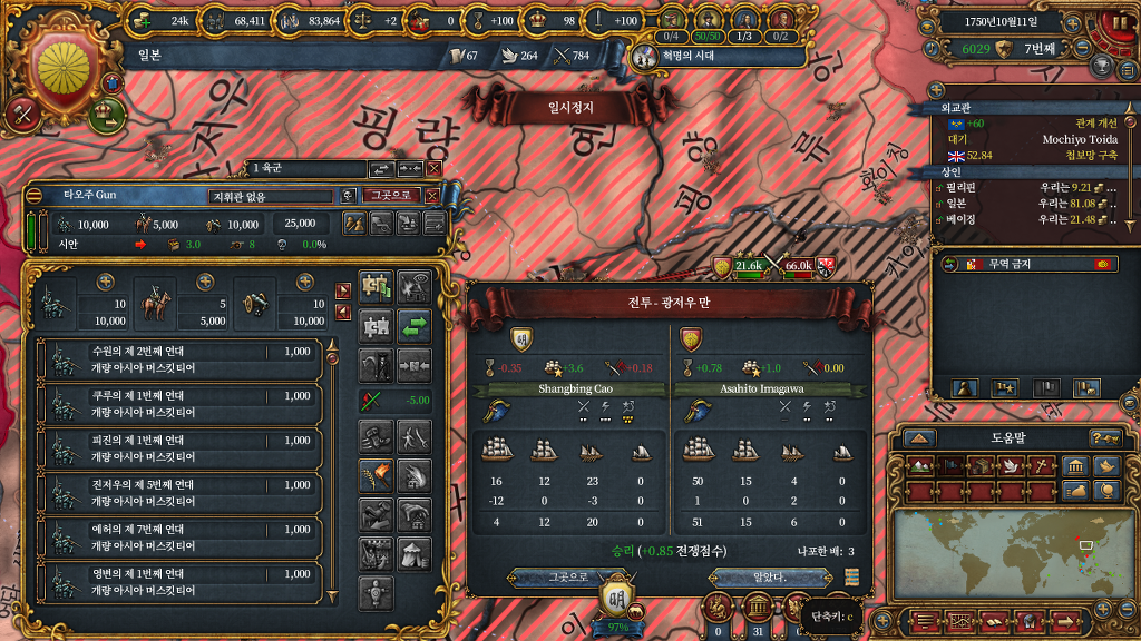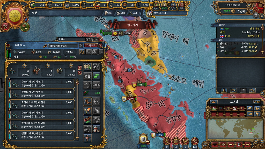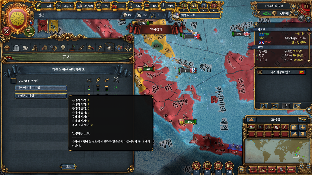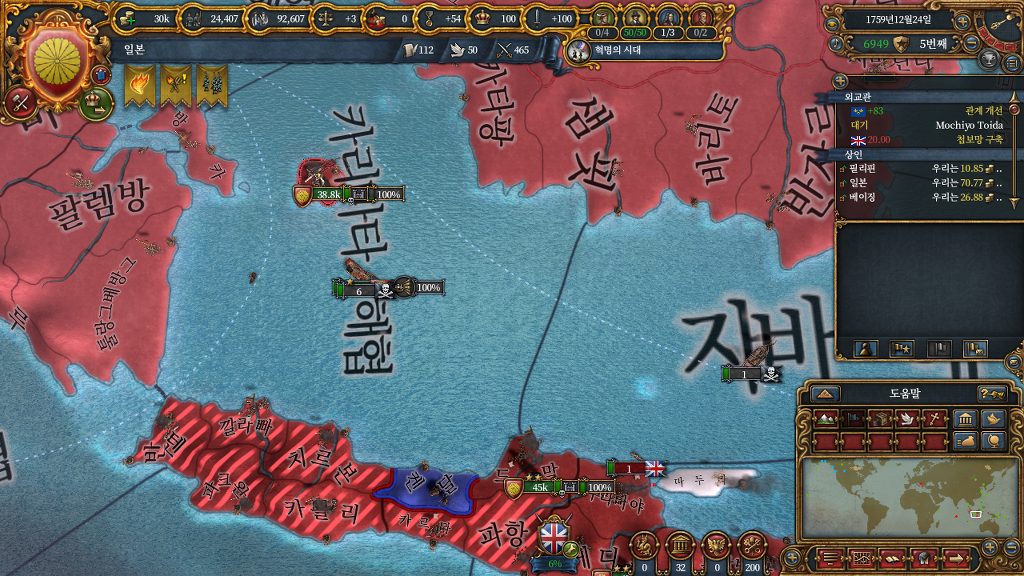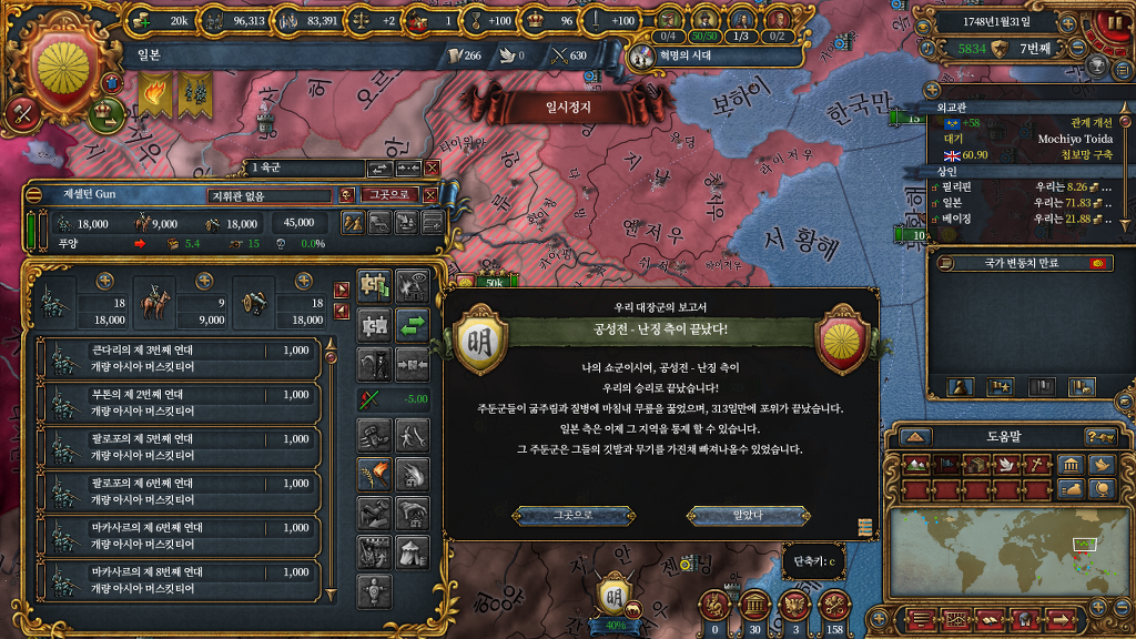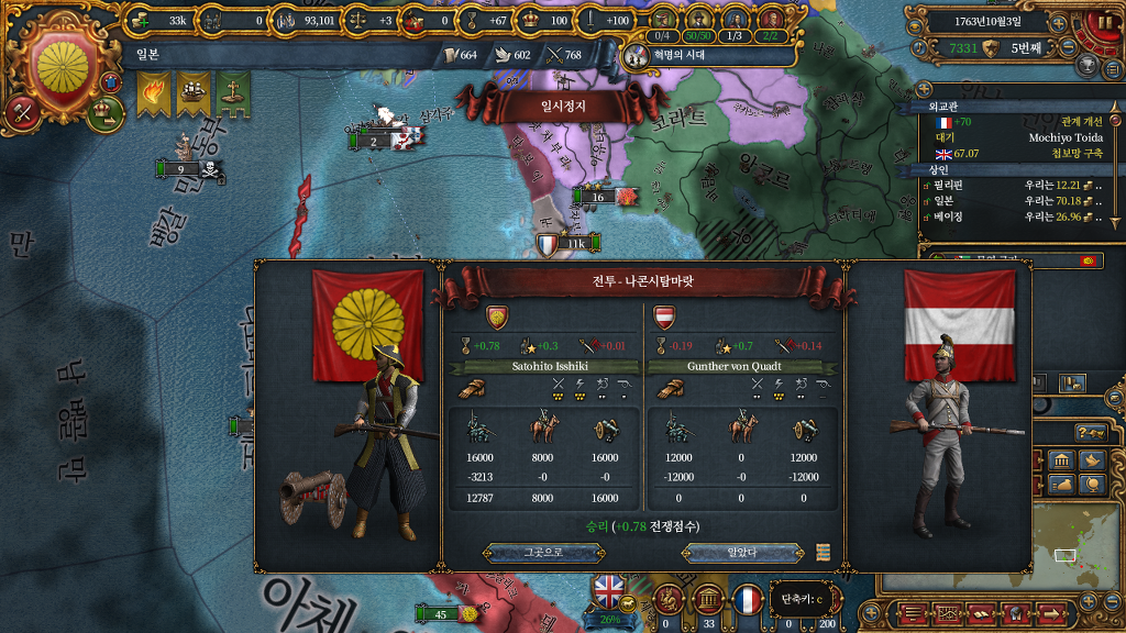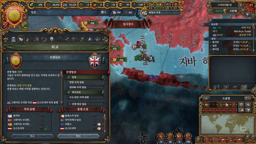 결국 일본은 브리튼을 상대로 승리를 거두어 자바 섬 절반과 주변의 자잘한 지역을 먹는데 성공하였다. 이제 일본의 앞길을 가로막을만한 세력은 포르투갈, 그리고 극강의 전력을 가진 스페인 뿐이었다.
