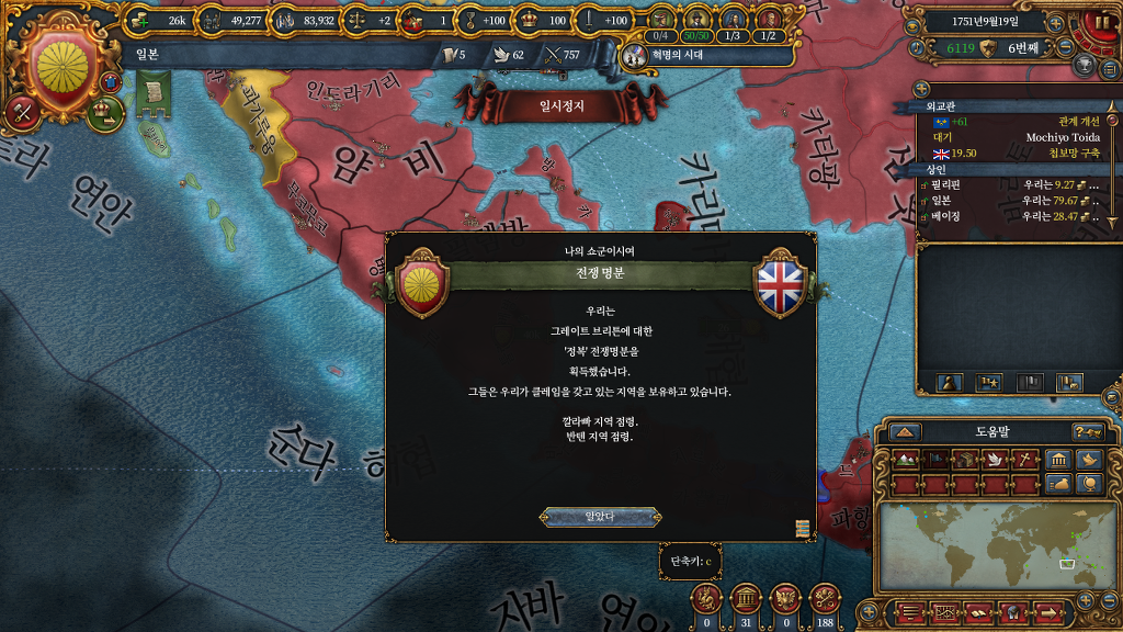 하지만 일본은 멈출 생각이 없었다. 그레이트 브리튼이 점유하고 있던 자바섬에 대한 명분을 조작하였다.