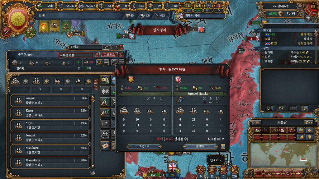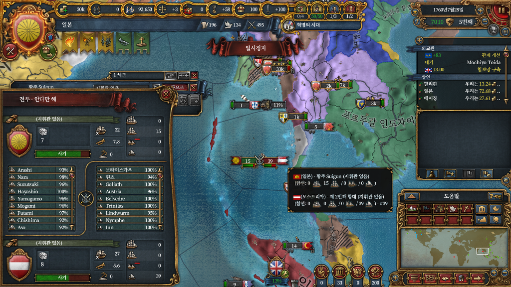 "집어치워, 바보야. 걍 3단 전열함 100척을 뽑아서 한방러쉬나 가시게. 일본이 해상 바보도 아니고."