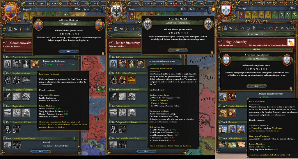 잉글랜드 의회 섭정 체제와 프로이센 융커 군정 체제를 고유 정부개혁으로 추가