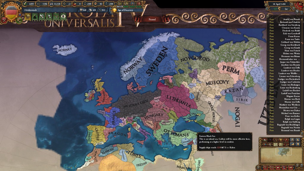 사방팔방 전쟁해서 그런데, 그나마 자제해서 저런 판도지, 아니었으면 유틀란트 반도랑 노르망디, 폴란드-리투아니아, 라트비아, 에스토니아 전부 먹었을 겁니다.