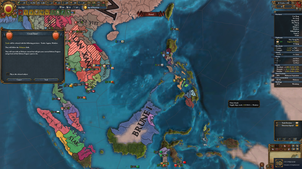 이제 필리핀 땅에 코어가 박히면 진출 방향이 좀 더 다양해집니다. 일이 수월하게 풀렸다면 아마 이때 쯤이 1470년도 초중반일 겁니다.