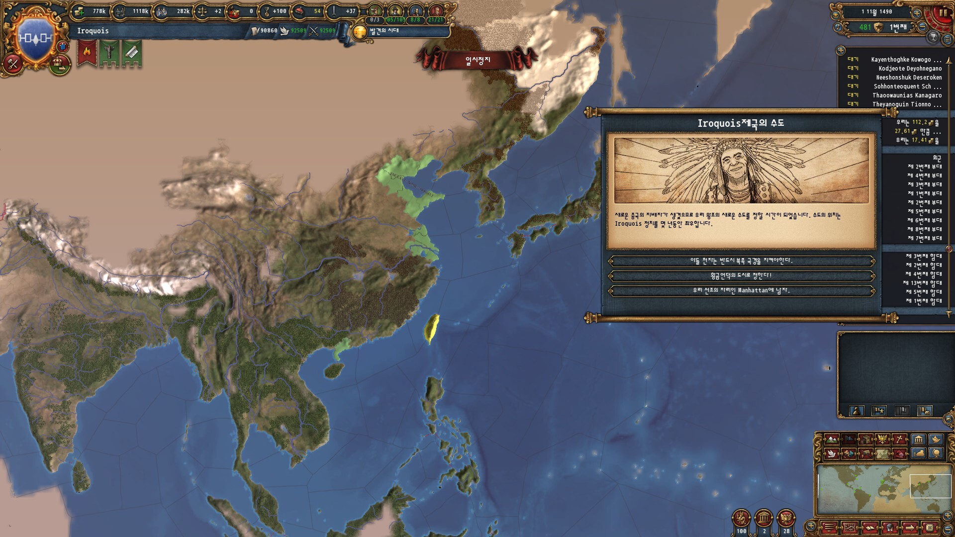 일단 신대륙 권역을 다 먹은 이로쿼이를 준비합시다.